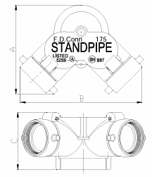 หัวรับน้ำดับเพลิง ยี่ห้อ BH, two way double clapper angle, Angle NPT, 175PSI,